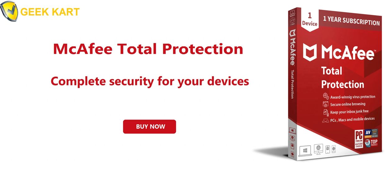 GEEK-KART is an independent desktop, laptop, tablets, peripherals and software selling website. All the pictures and logos are for representation purposes only. However we do have partnership with some brands mentioned in the partners section. All the information related to McAfee Support, McAfee Customer service, McAfee Security, McAfee Products, McAfee Antivirus and McAfee contact numbers are available at www.McAfee.com